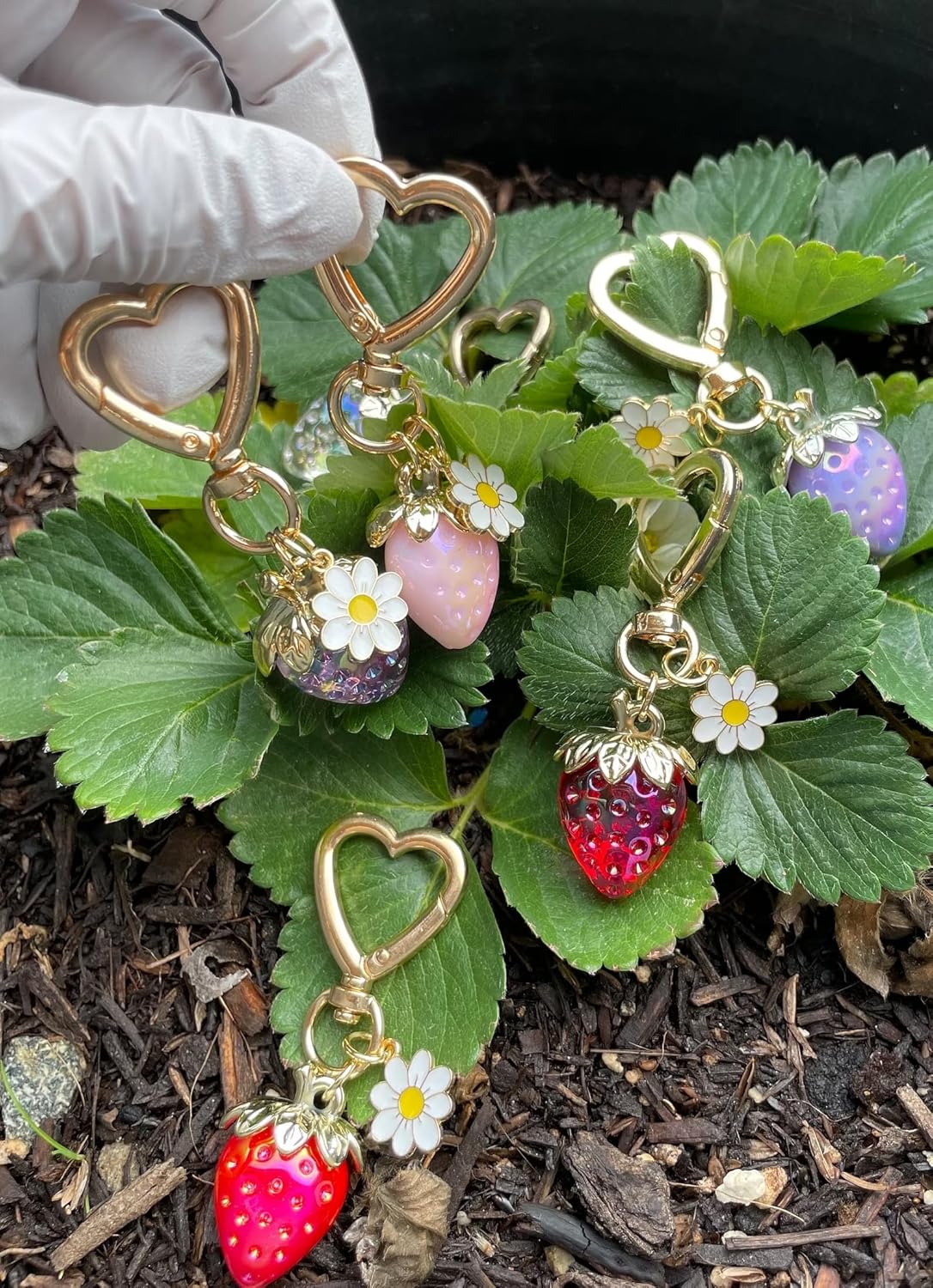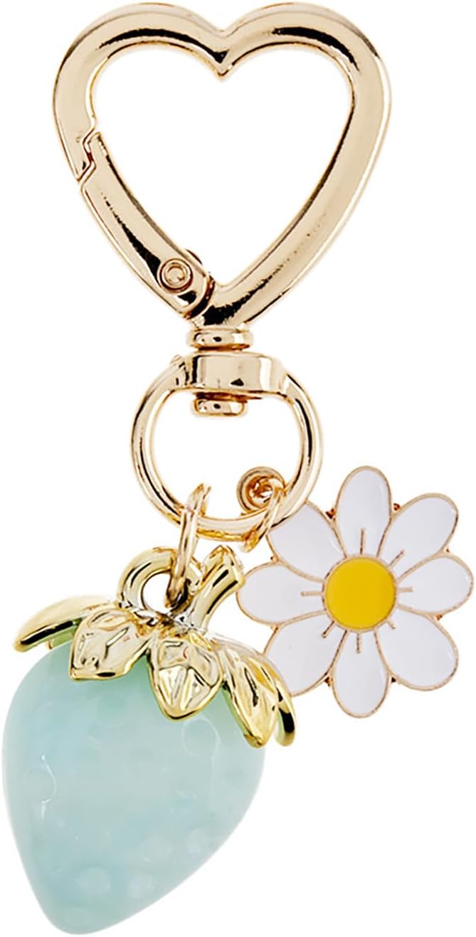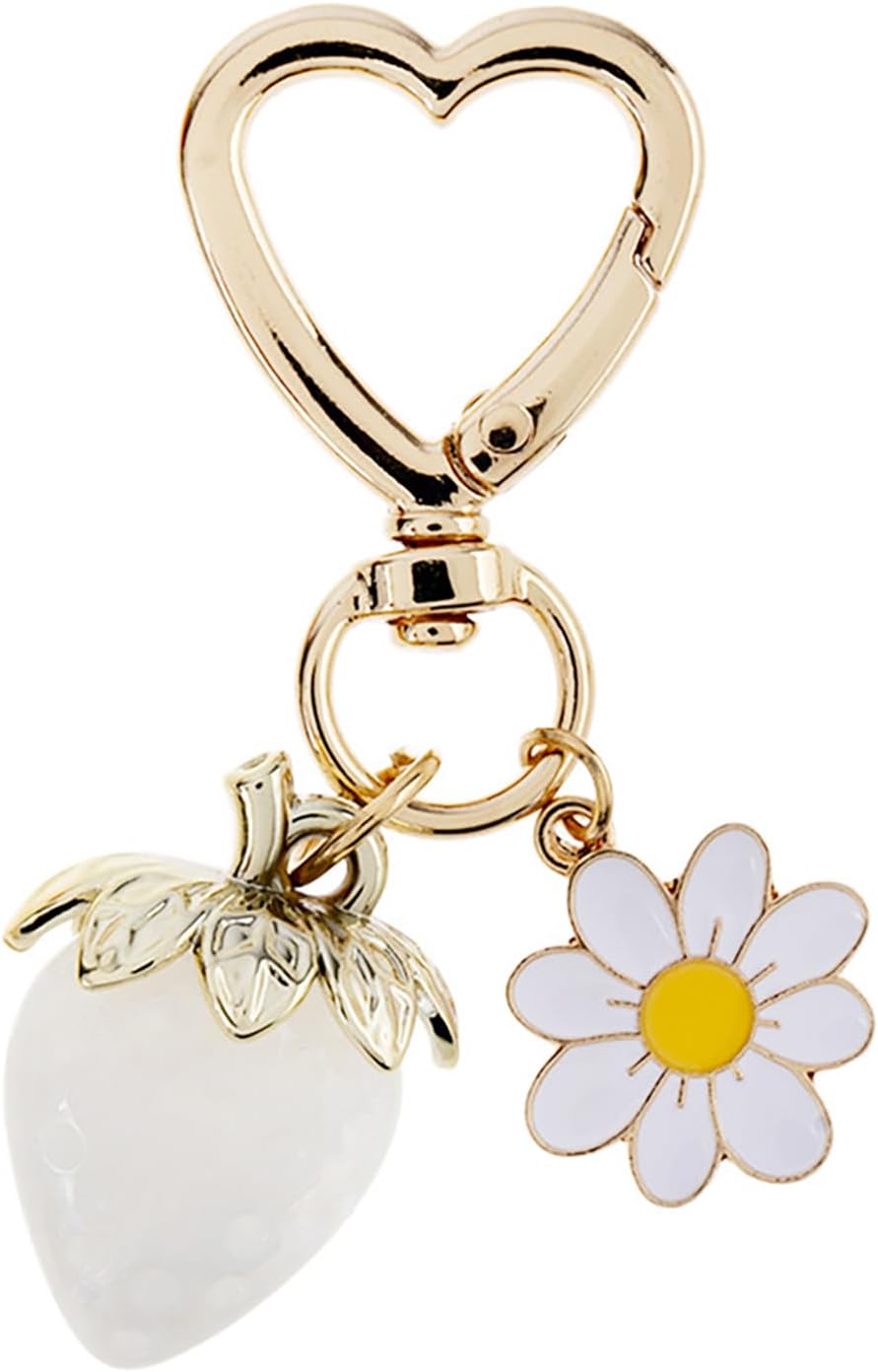 Cute Strawberry Keychain,Bag Charms,Kawaii Heart Flower Daisy Key chains Accessories Decor for Girls Purse Gift
