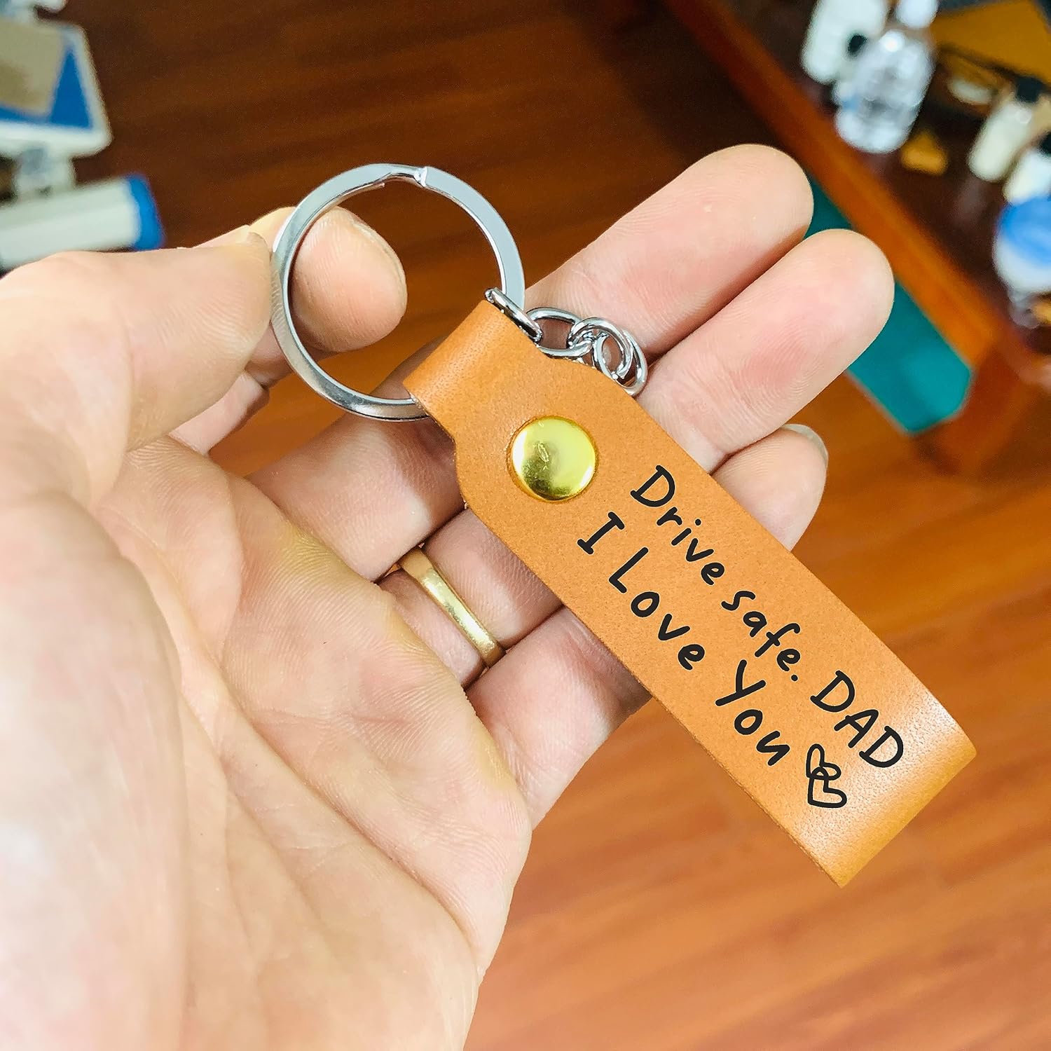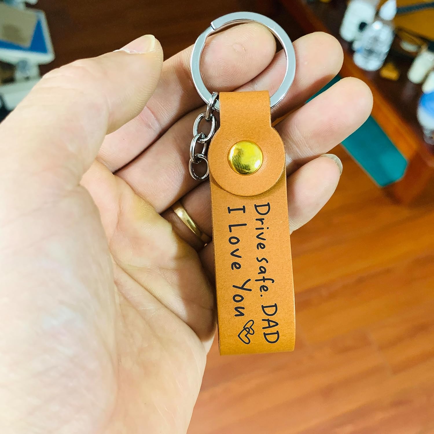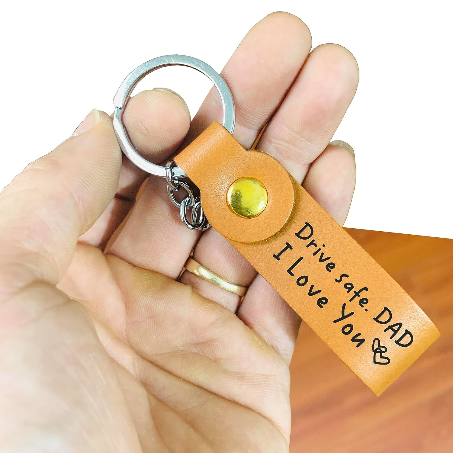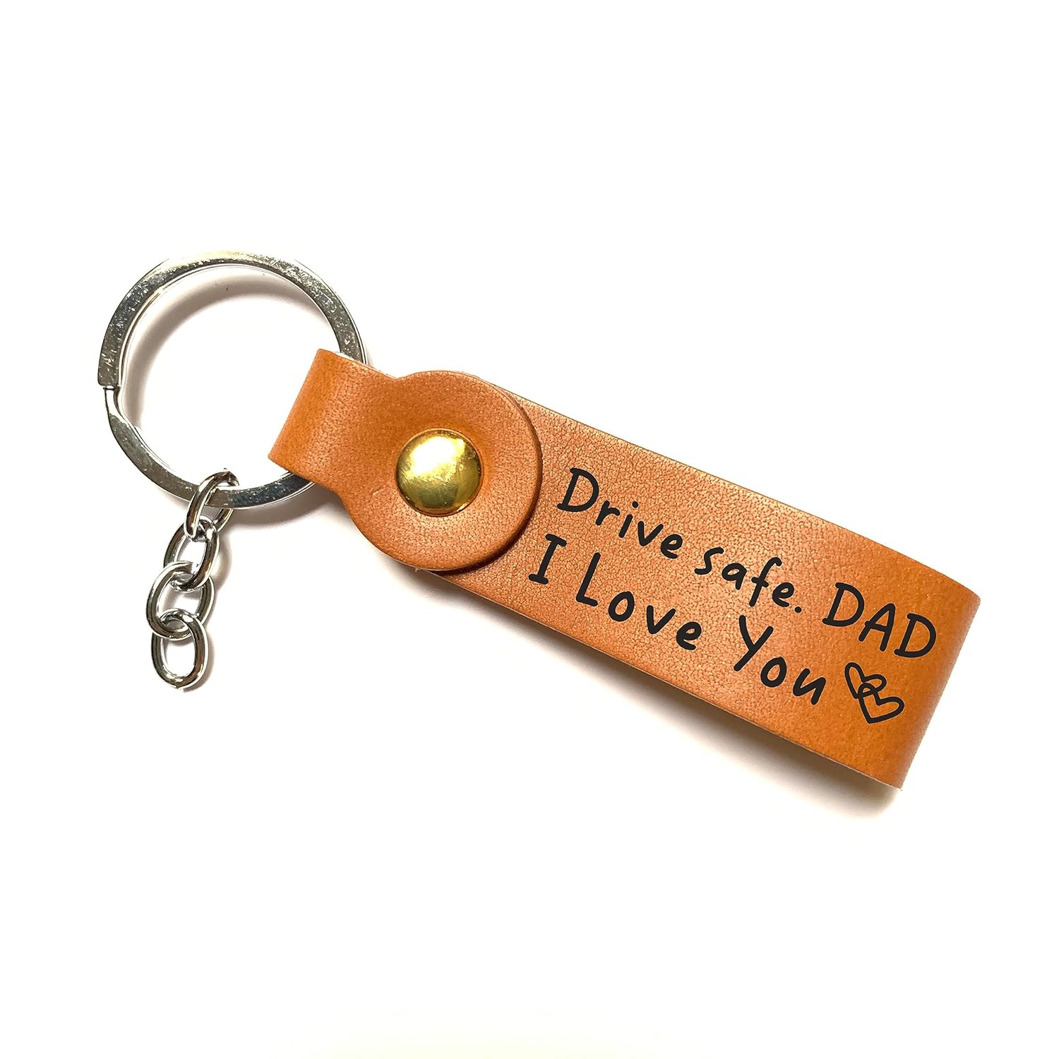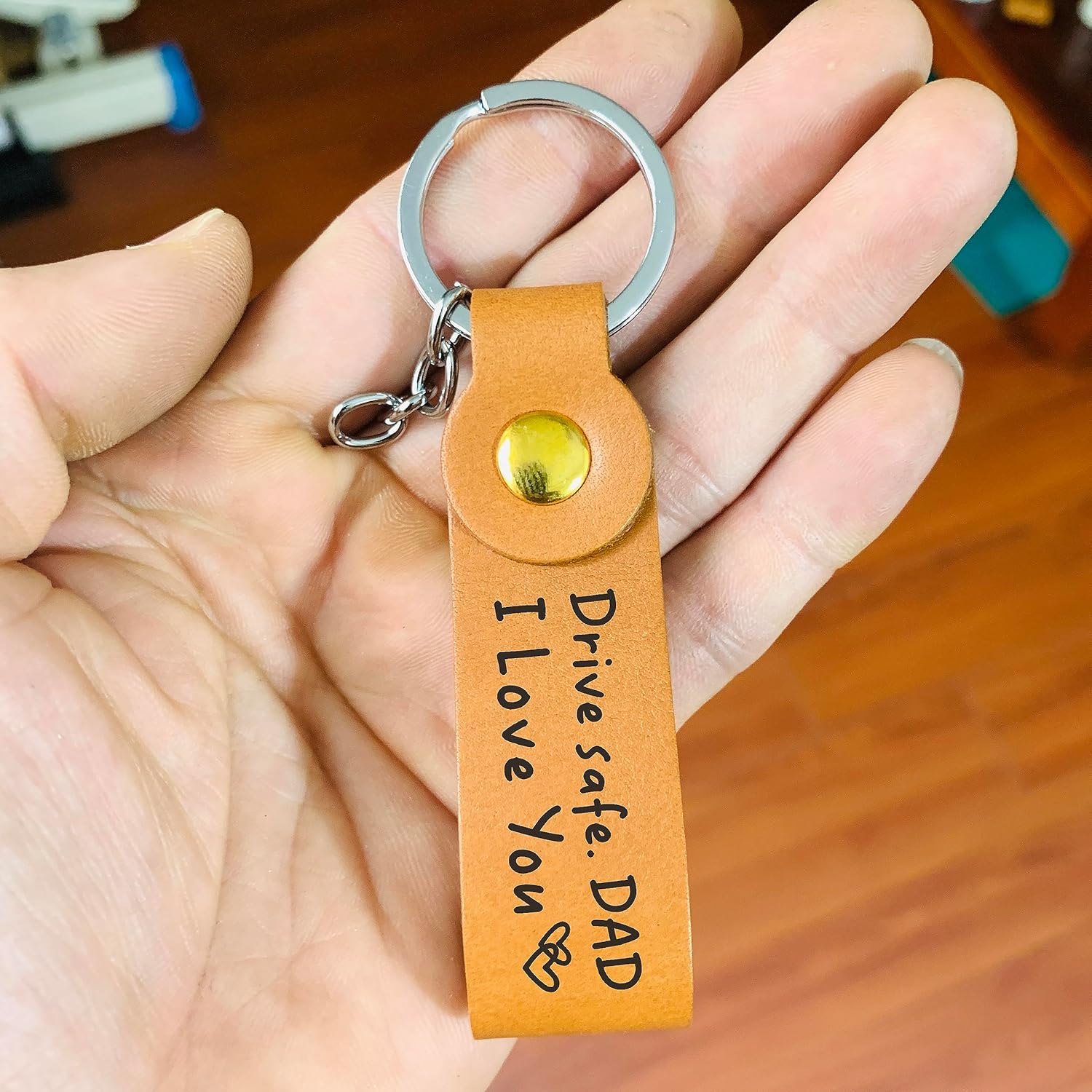 Love Dad Gifts from Daughter or Son - Drive Safe Dad I Love You Leather Keychain, Father's Day Birthday Gifts for Dad from Daughter, Christmas Gifts for Dad, Dad gift from Son